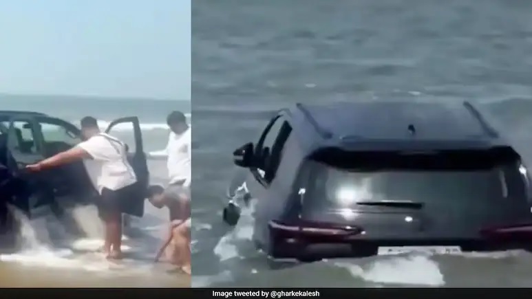 The vehicle soon got stuck in the sand and could not be moved. As the tide rose, seawater began entering the SUV, which worsened the situation. Rising waves partially submerged the Fortuner, causing extensive saltwater damage to its engine, interior, and electrical systems. After initial attempts to tow it with a Toyota Hilux failed, a JCB machine was eventually brought in to pull the SUV back to shore. Visuals showed the SUV partially submerged, with people opening its doors and water gushing out.