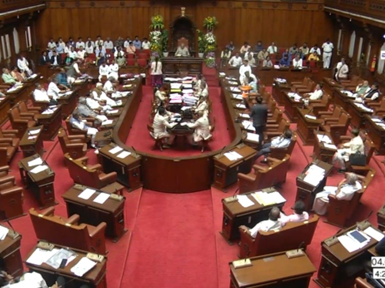 Later, amid strong protests by Congress members, he added that he would continue the House proceedings until BJP MLC Ravi arrived in the House.