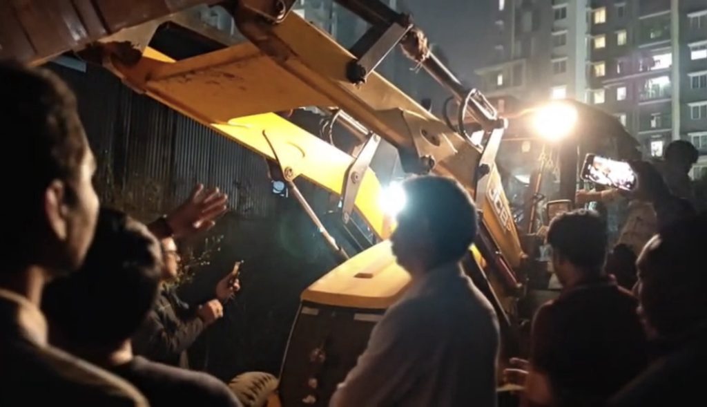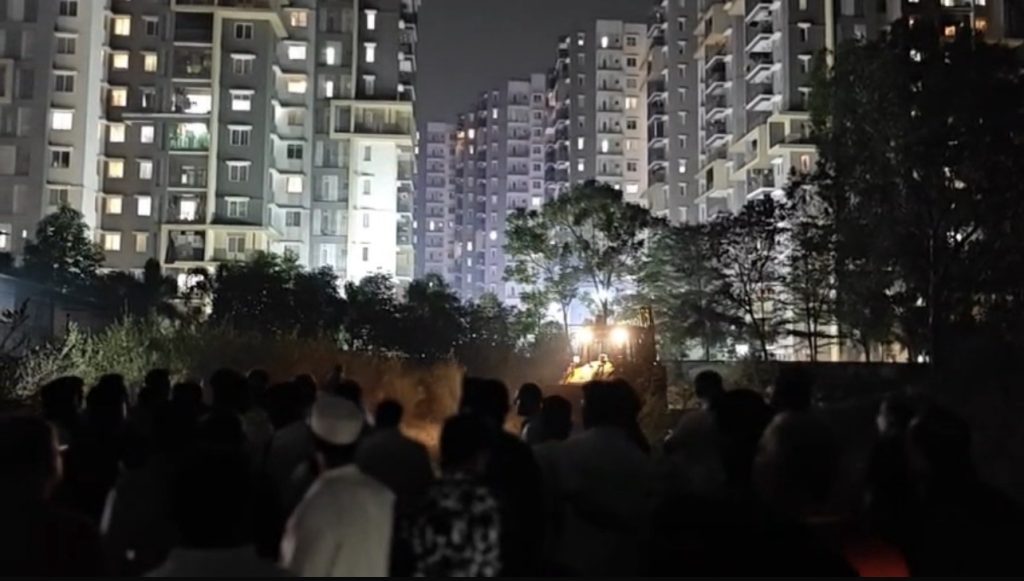 On Wednesday, serious tension erupted in Erragadda when officials arrived with earthmovers (JCB) to level an empty plot of land located behind Brigade Citadel and Kalpataru Apartments for a burial ground (Qabristan).