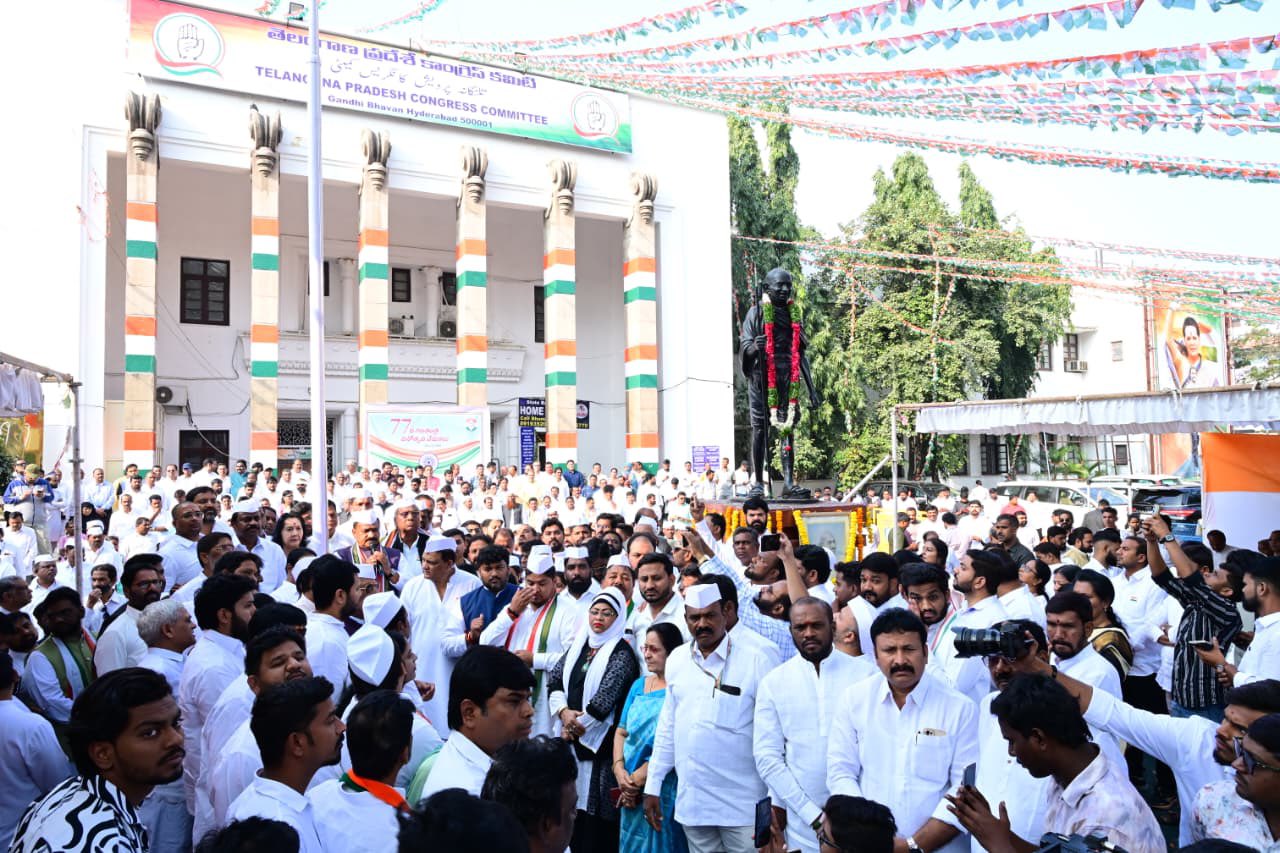 TPCC Chief hoists National Flag at Gandhi Bhavan