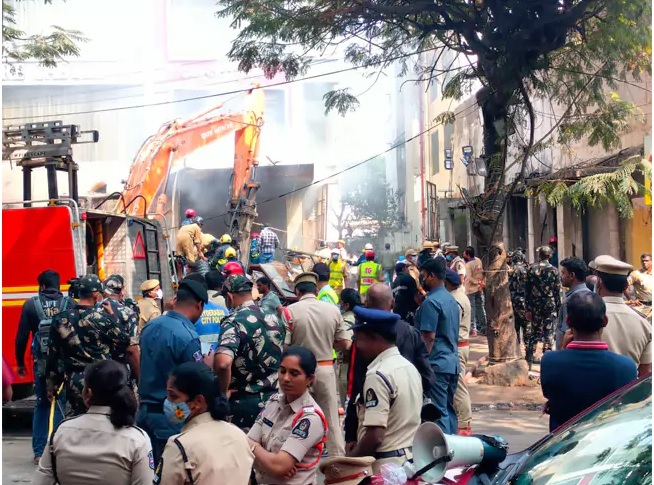 Hyderabad, Jan, 25: A horrific fire accident at a multi-storey furniture showroom in Nampally has claimed at least three lives, including that of a woman, while rescue operations continue for two children still feared trapped. The blaze, which broke out on Saturday afternoon at Bacha Crystal Furniture, turned into a grueling 20-hour battle for emergency services.